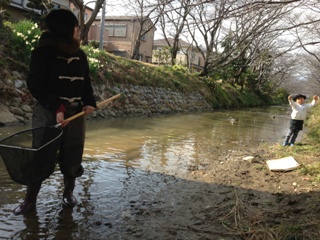 除草された新川、今回はどんな生き物がとれるでしょうか?