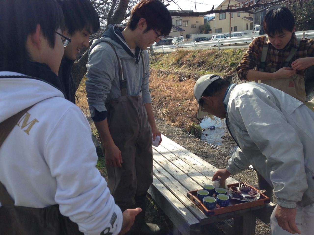 大沢川の定点調査が終わると、近隣住民の方からおいしい差し入れをいただきました!