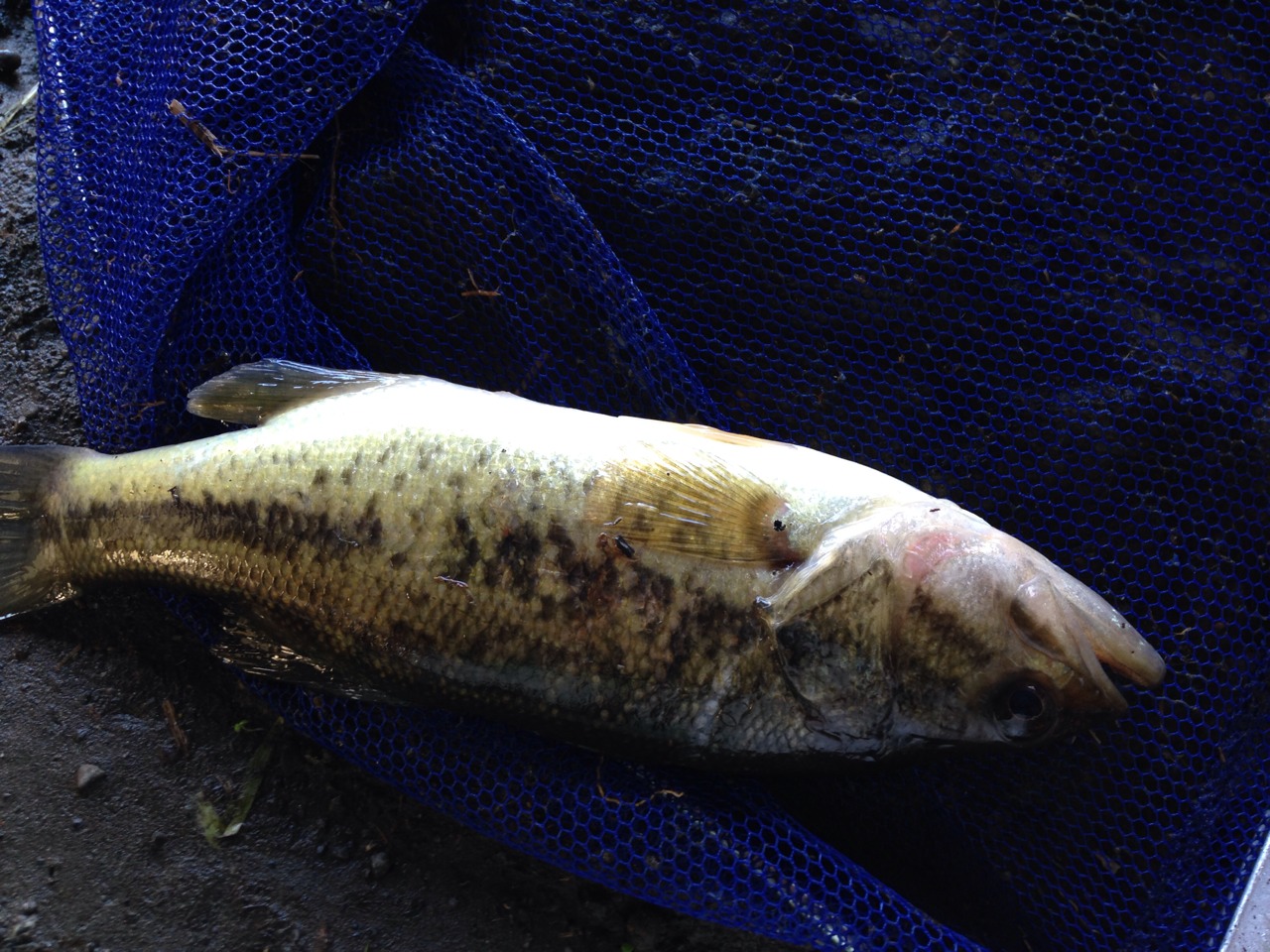 大きなBB(ブラックバス)を捕獲に成功!(特定外来種の飼育・リリースはできません!)