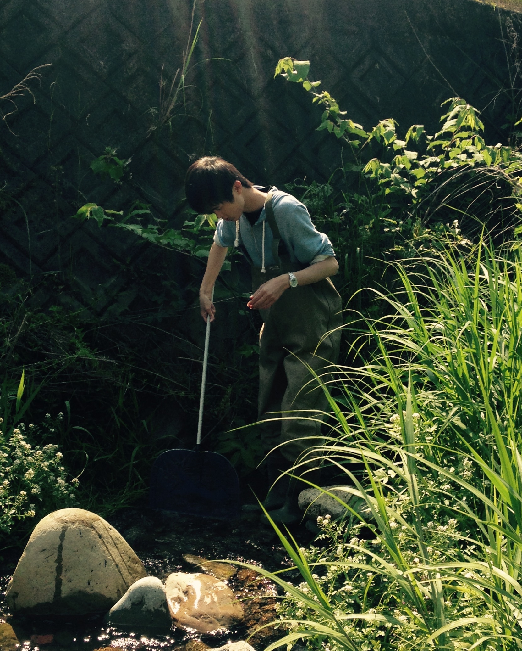 ↓ ガサガサする1年生。この日は珍しいホトケドジョウもとれました