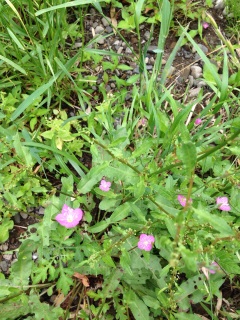 この花はおそらくフトモモ目のアカバナ科に属する「ユウゲショウ(アカバナユウゲショウ)」でしょう、原産地は南米から北南米南部で現在は帰化植物として日本に定着しています。夕方から咲くので「ユウゲショウ」という名前なのですがこのときは曇っていたため咲いていたのでしょいうか? ちなみに「ユウゲショウ」は「オシロイバナ」の通称でもあるために、注意が必要です。