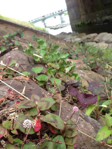 川辺に咲くヒメツルソバと庵原川に別れを告げ、今回の調査を終わりました。