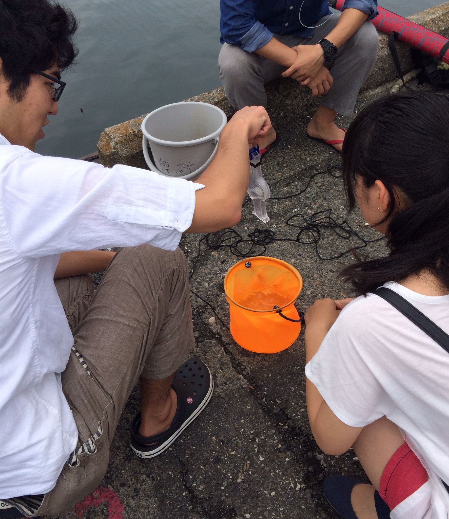 1年生も定点調査はまだ2回目。海での調査は初めてということで、先輩に教わりながら真剣に取り組んでくれました。