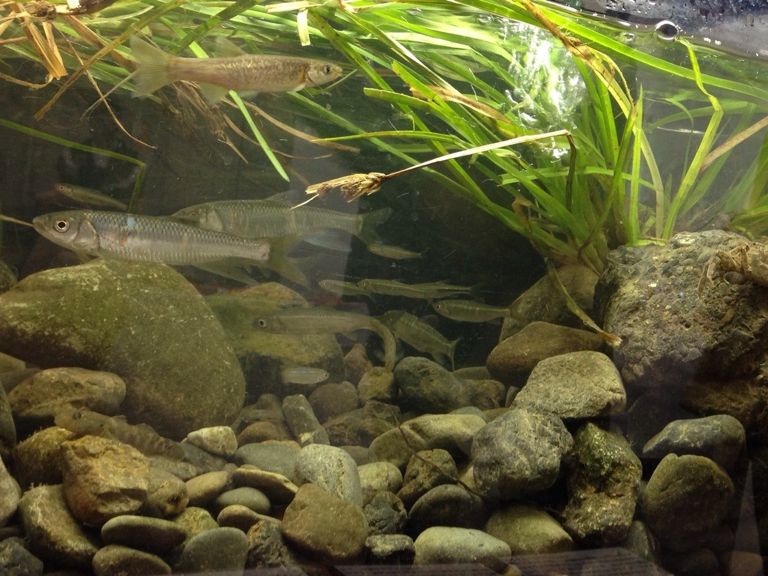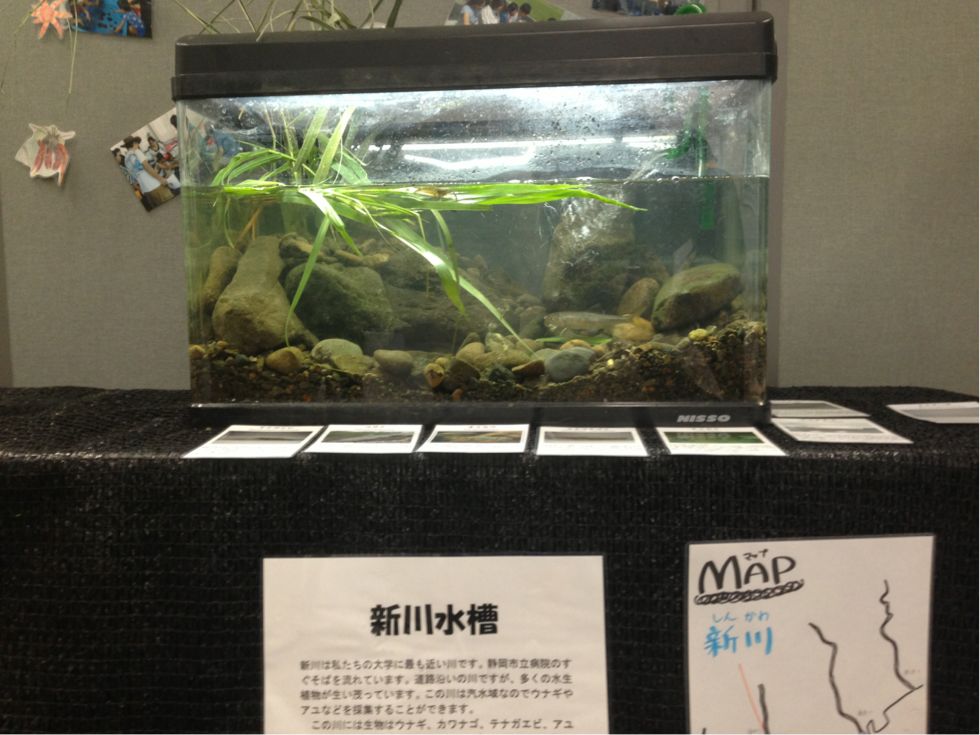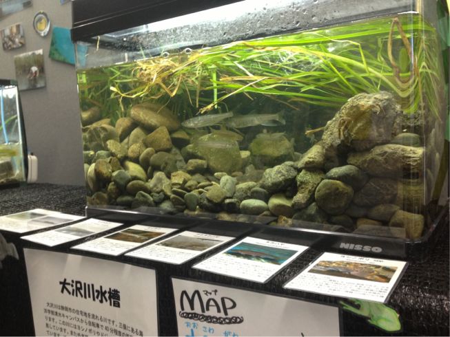 まずは、新川を再現した水槽から、