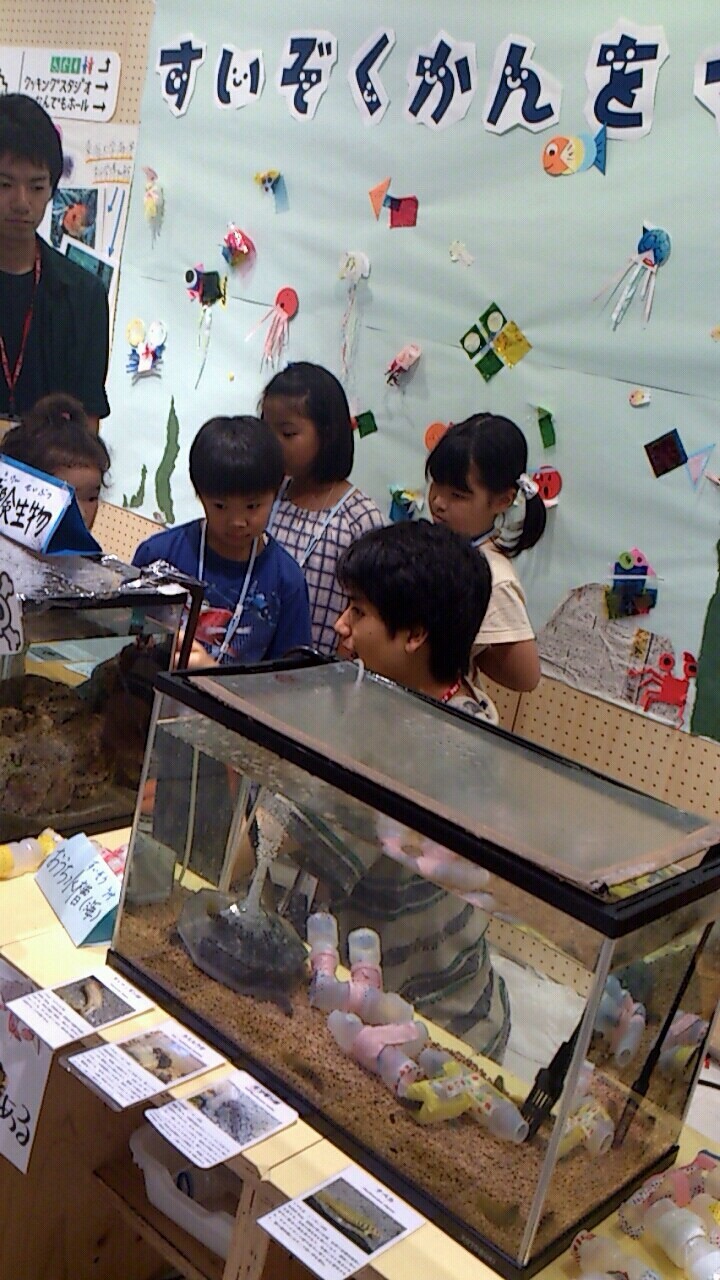 私たち水棲研のお仕事は水槽展示の場を水族館という形でこどもたちに提供しその中でこどもたちには飼育員さんとなり働いてもらいました!!
