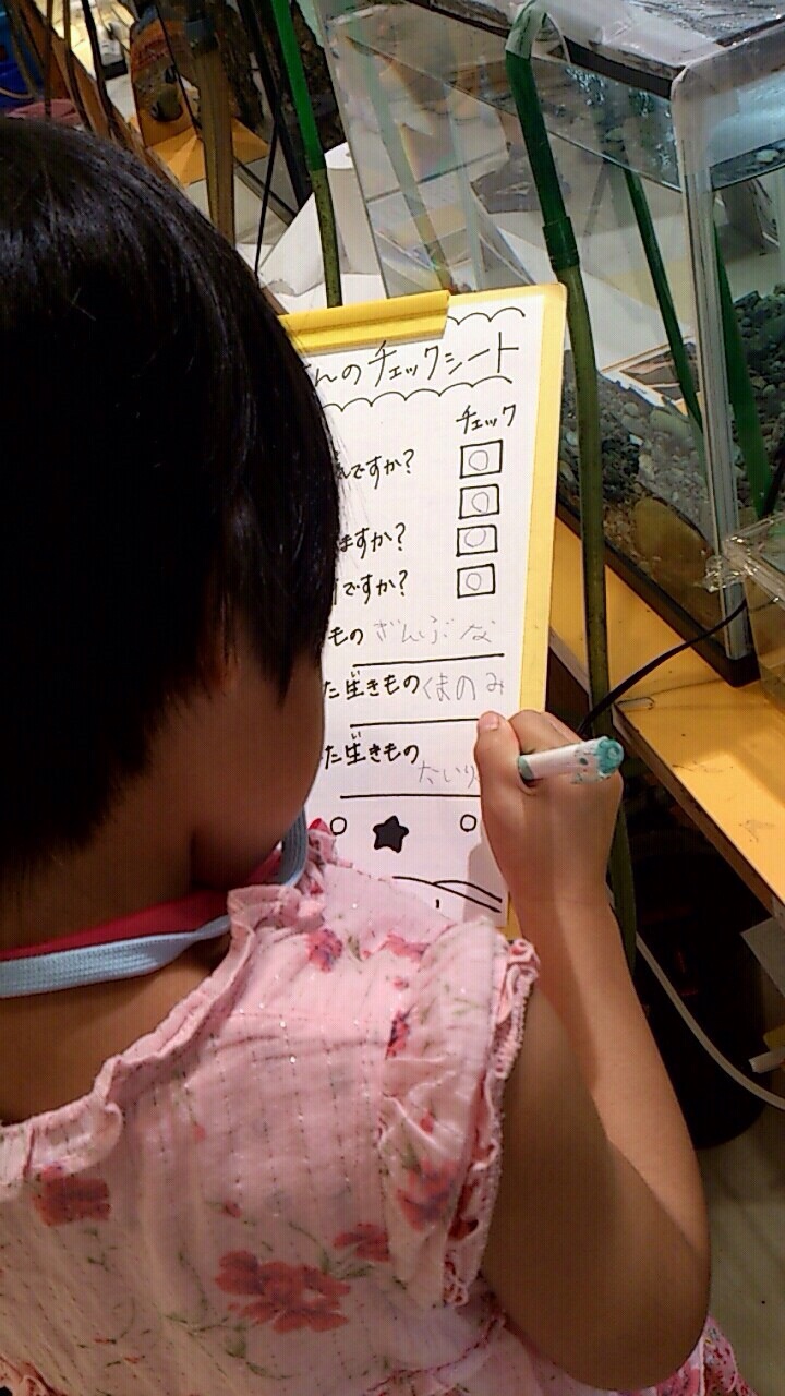 子供飼育員さん、チェックシートもしっかり記入してお仕事終了です!
