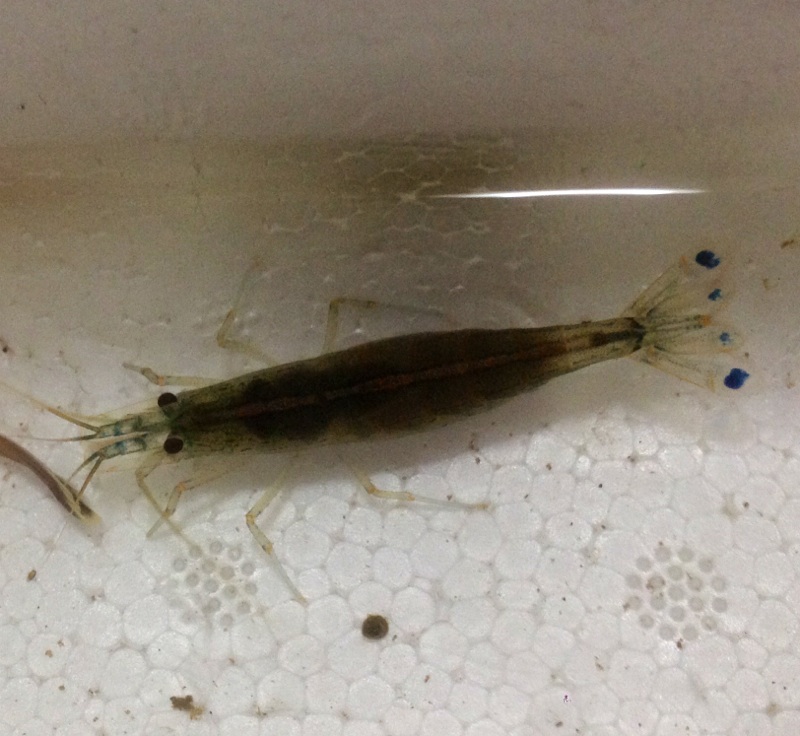 今回の最大サイズのテナガエビです、腕が長すぎて画面からはみ出てしまいました、