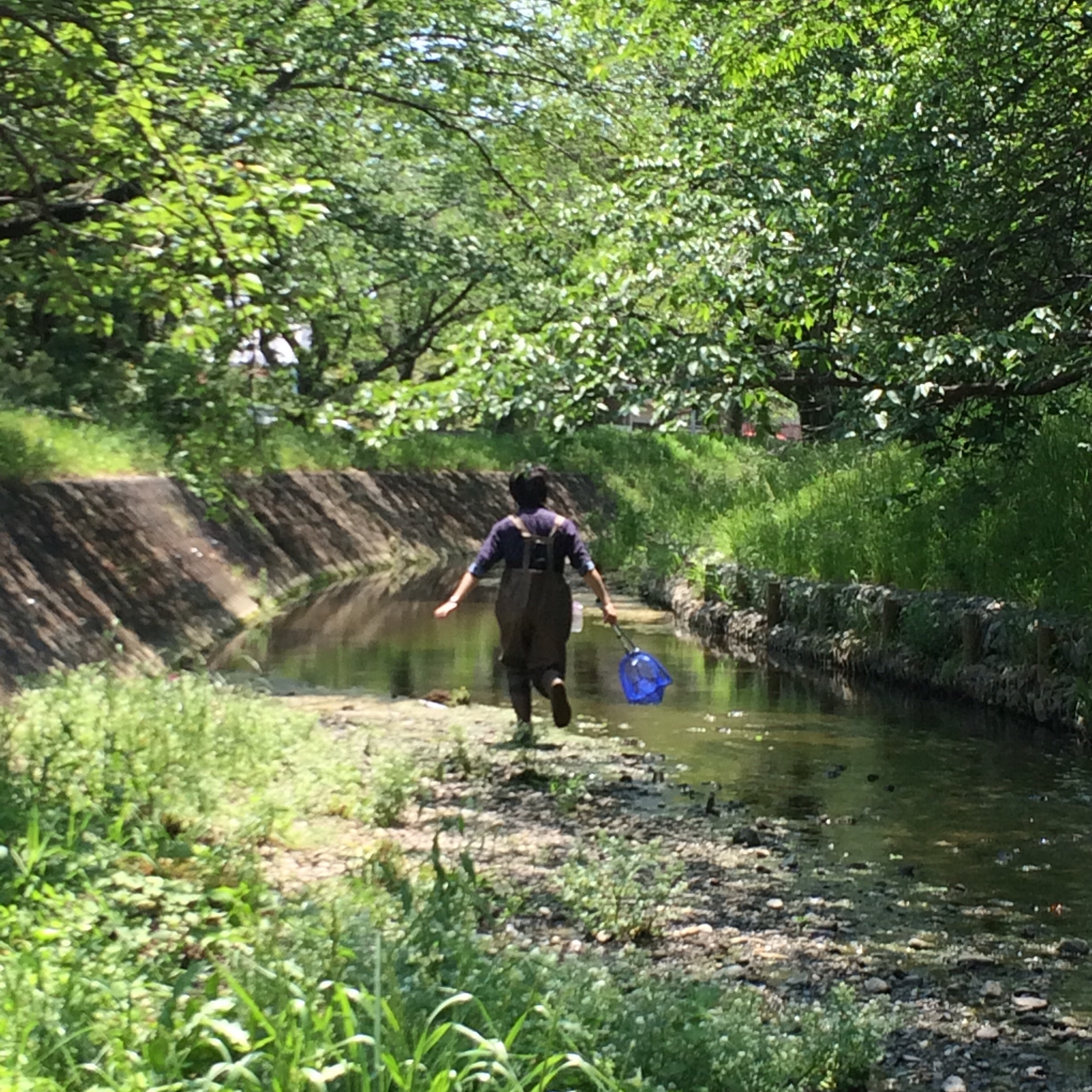 たとえば、一見状態は悪く見えるこの川ですが、藻の下に網をいれてやると・・・