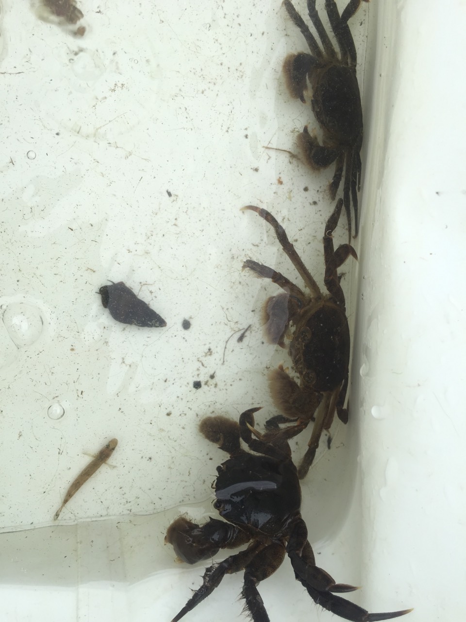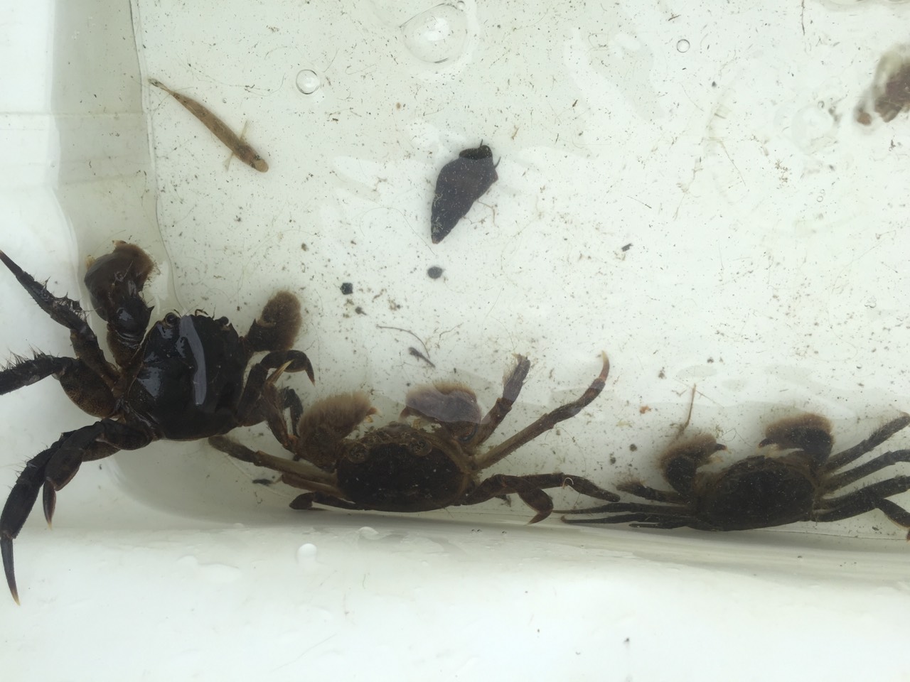 流れのよどむ泥地を好むマドジョウや、豊富な栄養を求めてやってくるモクズガニなど、割と生き物はいました!