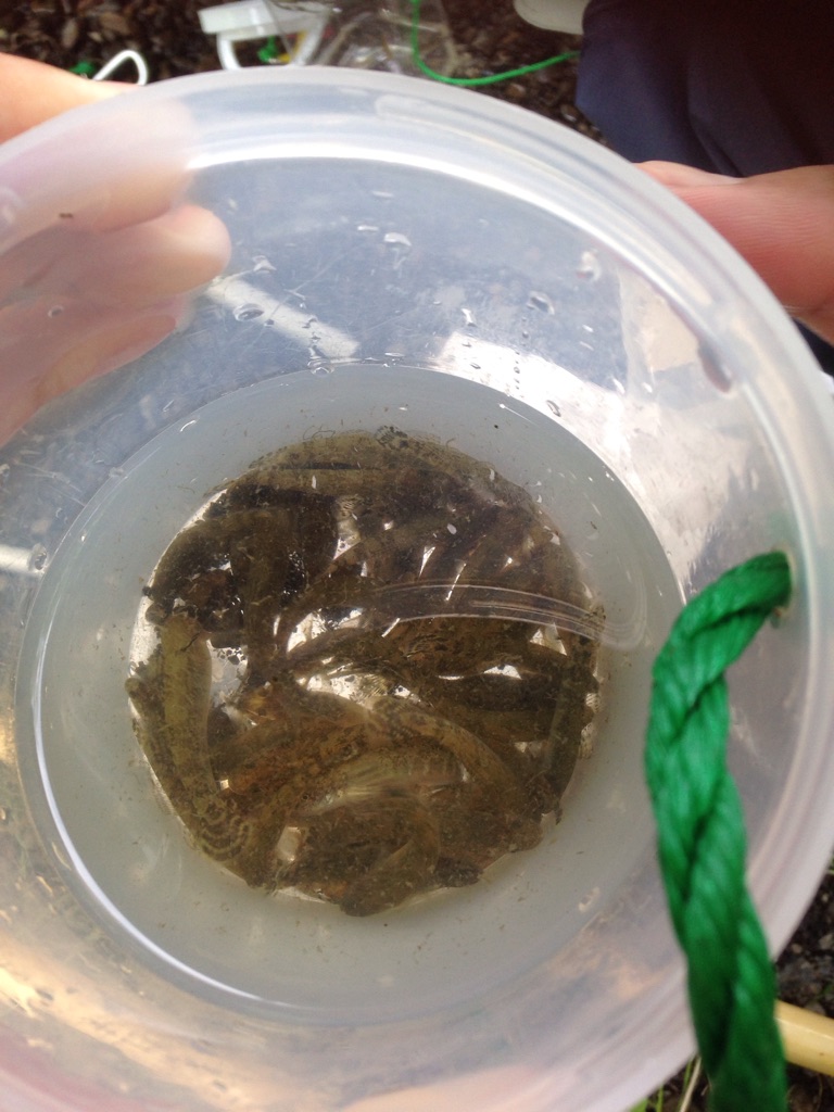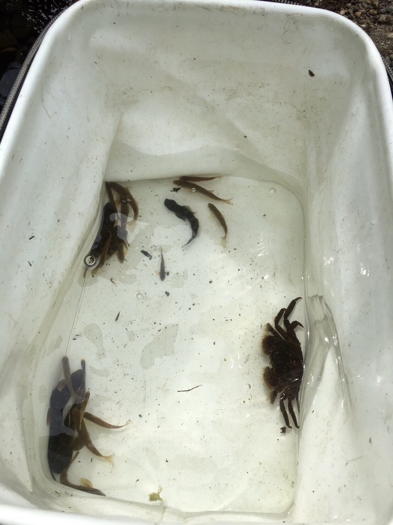 今回は水質が悪いのでたくさん採れるか心配でしたがスミウキゴリとシマドジョウが20匹以上採れました。