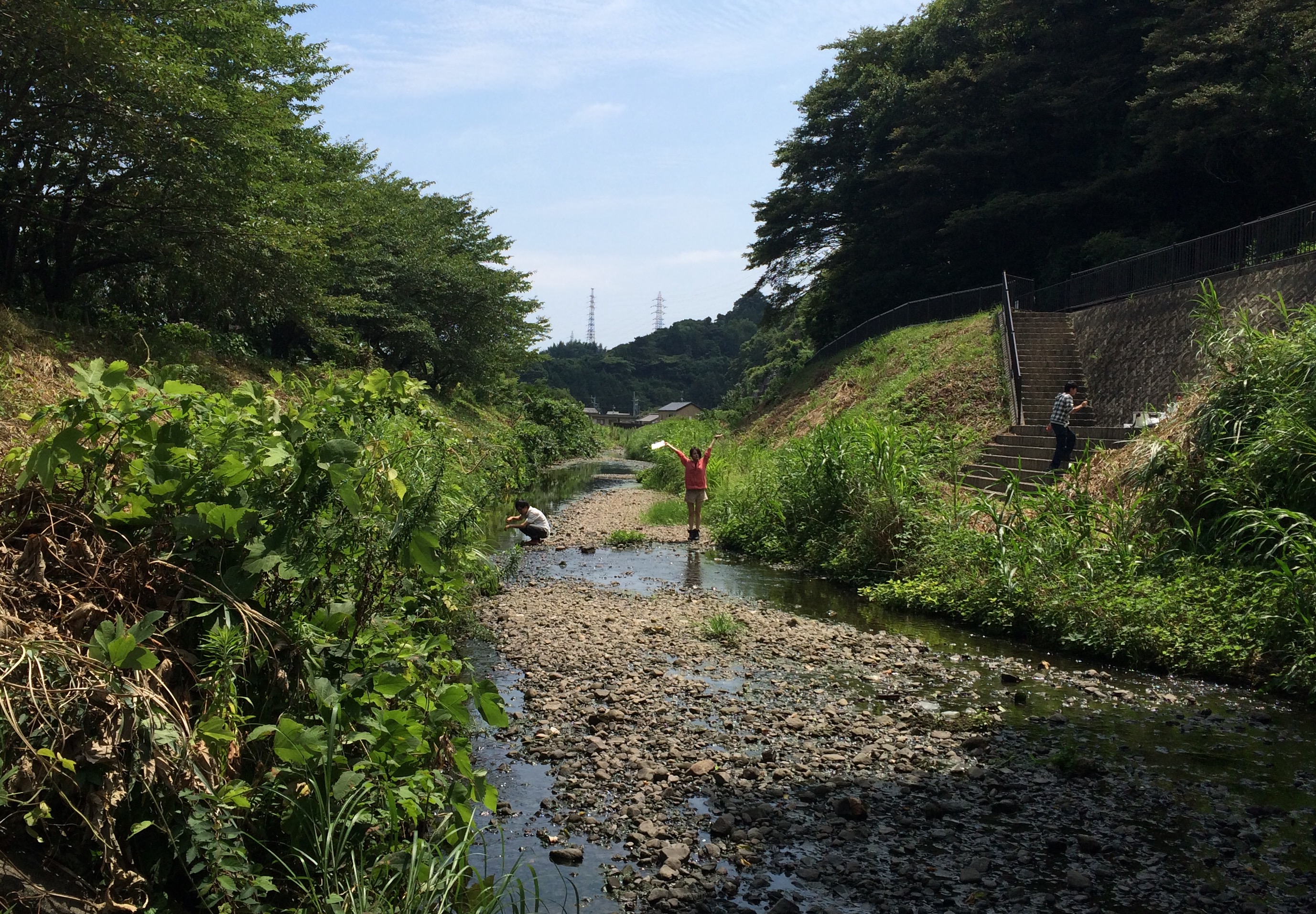 良い天気に恵まれ、川で水遊びをする小学生もいました。