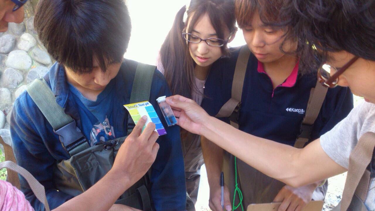 水質の調査が終わり、続いては生物採集に移ります。