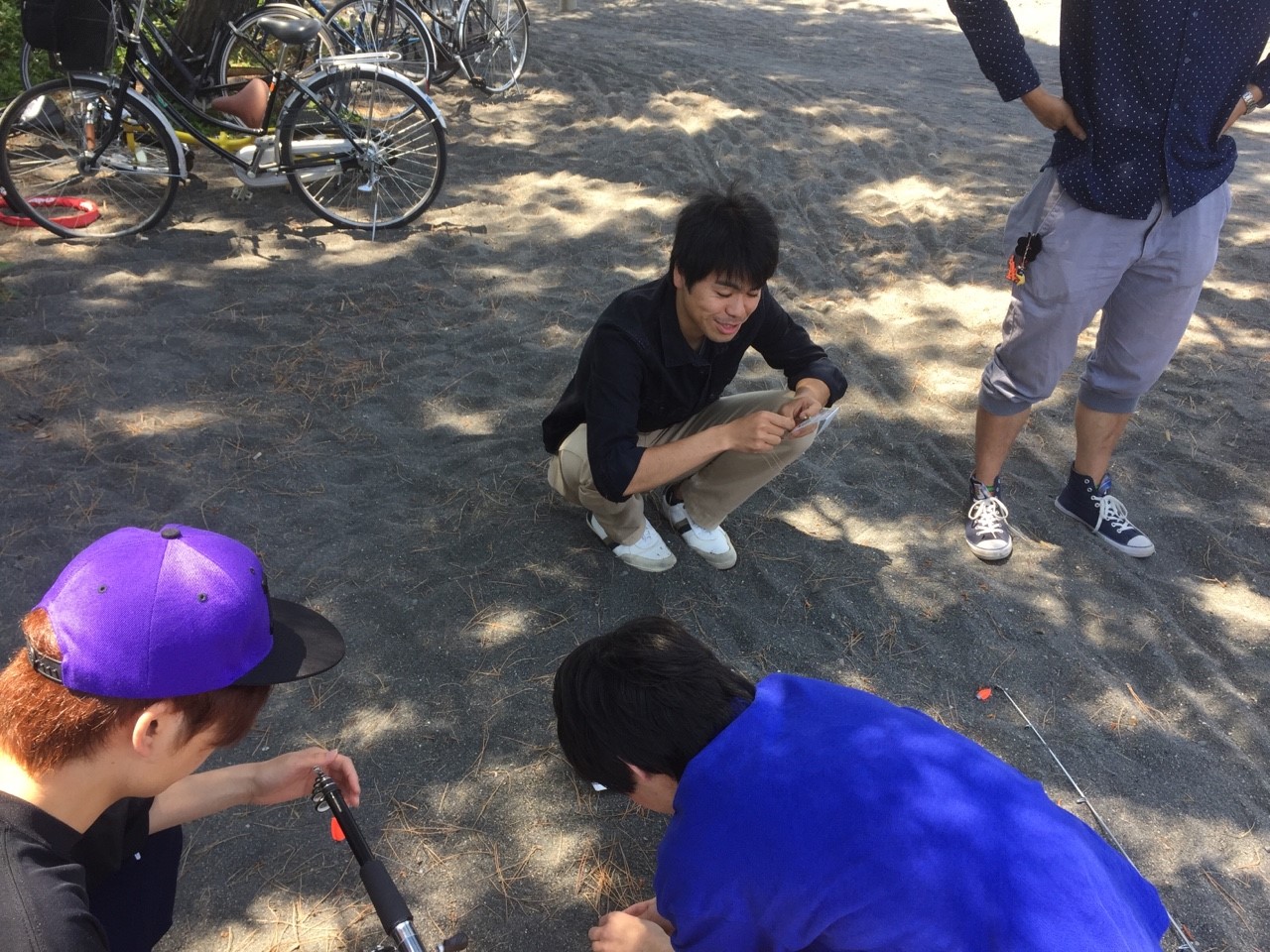 水質調査の次は釣りでの採集です。ほとんどの部員は所謂ちょい投げですが、最近アジ等の青物が釣れたという話もあったので一人はルアーで釣りをしていました。気になる釣果ですが・・・