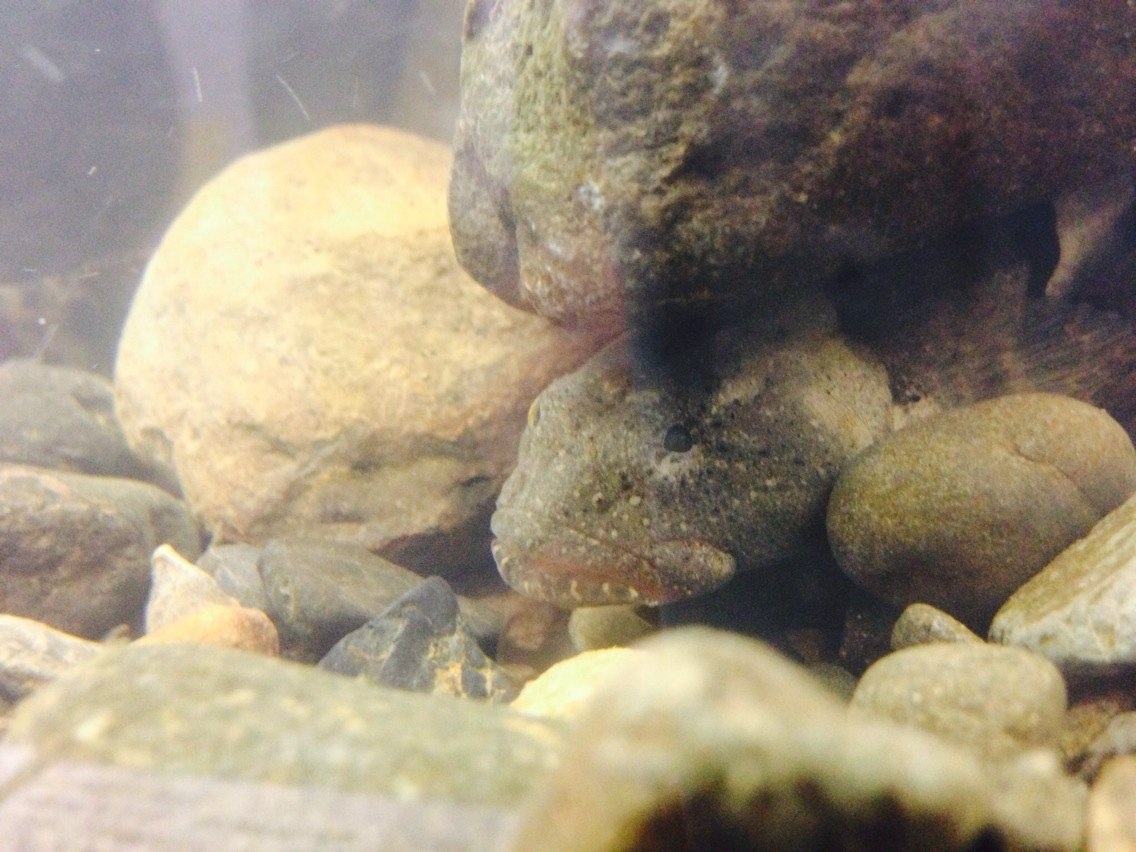 こちらは貴重な軟骨魚類成分であるドチザメ(手前の魚)の水槽です!・・・が、前日部員が捕獲した巨大コチ×3のせいで少し見劣り気味だったかも・・・。一番でかいコチは50センチ近くありました!実物を見るとかなりの迫力です!