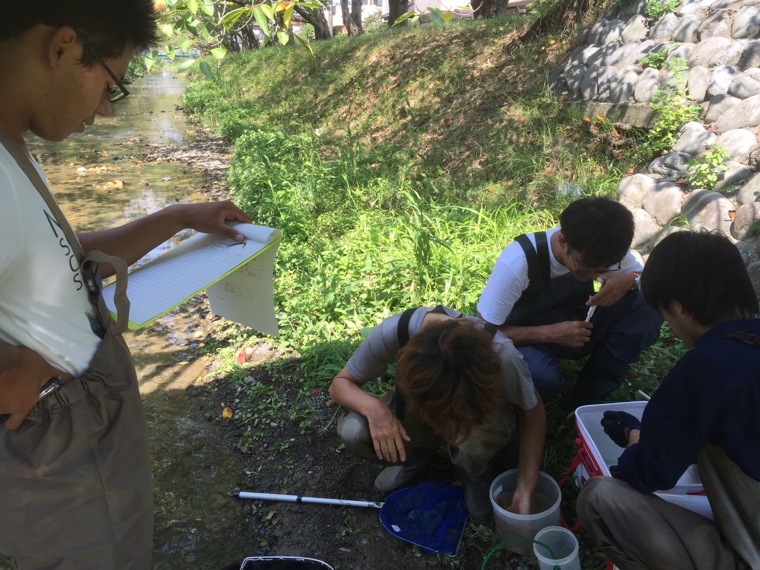 水質調査を終わらせて、早速生物採集に移りました。